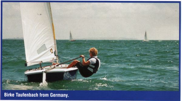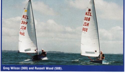 You are here: okdia.org > pictures > nzl nats 00 Pictures of NZL Nationals 2000 Takapuna, New Zealand, 8th - 12th February Report and Results. Russel Wood and Greg Wilcox reaching Birke Taufenbach beating